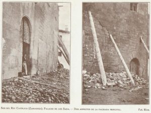 Es ejemplo del rápido deterioro esta fotografía de Vidal tomada en 1925. En ella podemos apreciar cómo había colapsado el muro de la fachada cercano a la puerta principal, en contraposición con la del fotógrafo Mora, de 1924.