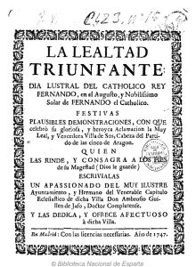 «Aquel Rey, que teniendo en la frente una luminosa antorcha veía lo más distante, gobernaba lo presente, y oponía discretas precauciones a las contingencias de lo futuro. El Señor Rey Don Fernando el Católico, digo, pero no era menester expresarlo, bastaba decir, que nació en esta Villa el Rey, para entenderse, que no podía ser otro, que el Señor Rey Don Fernando el Católico. Es V. M. dignísimo descendiente, y sucesor suyo, y lo que más es, inmediato sucesor en el nombre; y como lleva vinculadas las glorias, y los trofeos la denominación de FERNANDO, está viendo que le ha de competir V. M. en el Heroicisismo, ya que la Providencia divina le ha hecho heredero de su excelso nombre. Ya empieza V. M. a seguirle, pues en pocos días se reconocen por los Vasallos muchos siglos de aciertos».