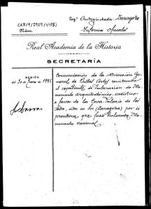 El informe fue aprobado por la Real academia de Historia en sesión del 7 de enero de 1938.